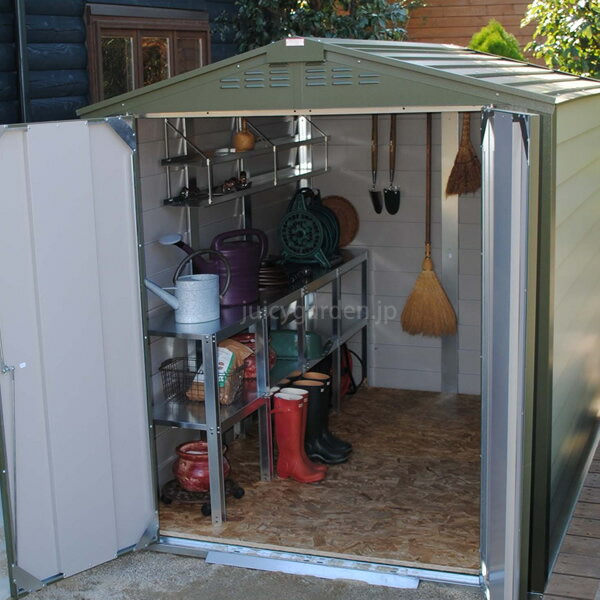 メタルシェッドに合わせて、屋外で使うガーデニング用品、ガーデンツール、カー用品、バイク用品などの整頓に。